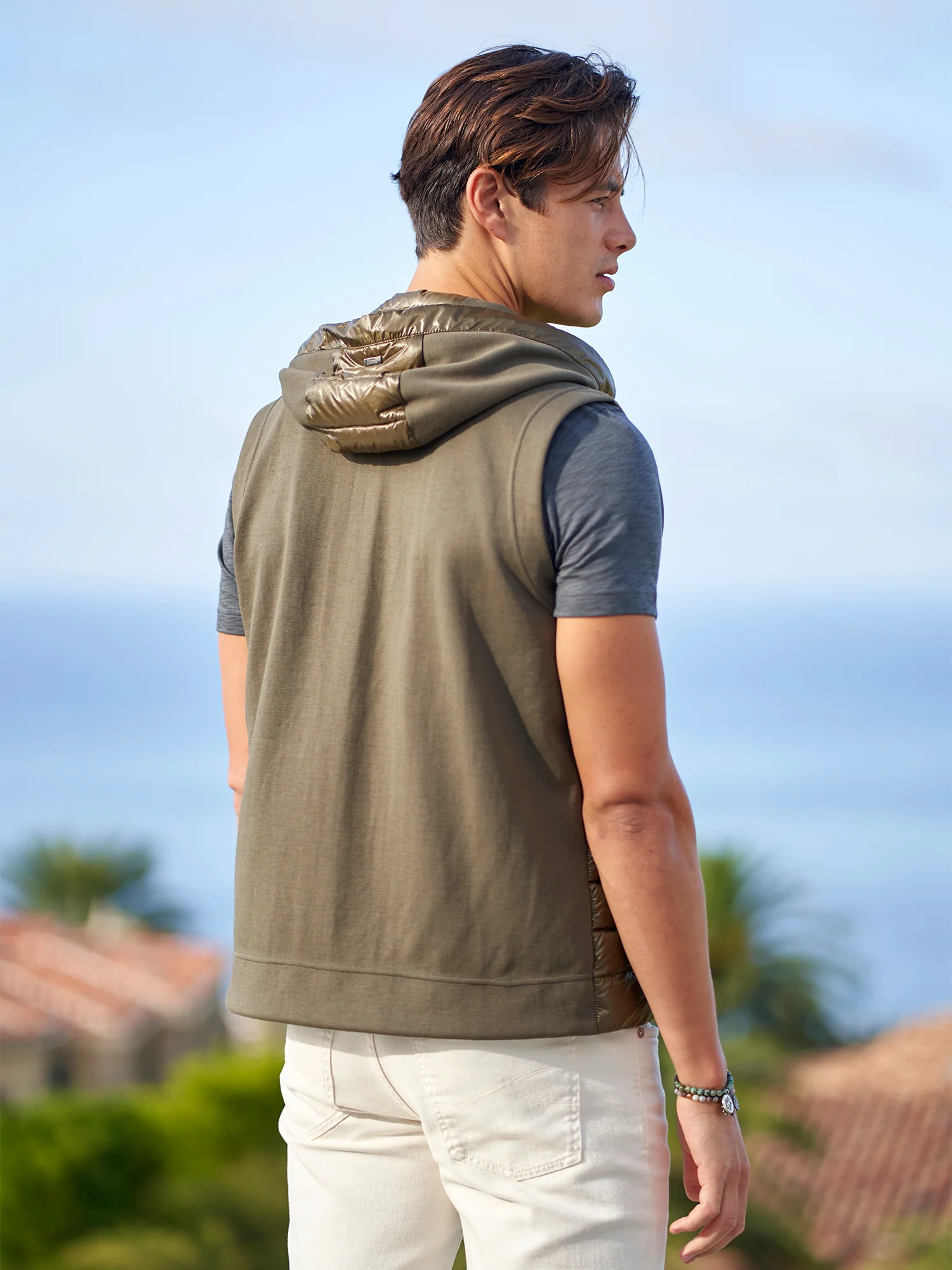 The Albin Vest by Herno features ultralight nylon, down insulation, and a drawcord hood to maximize warmth. The front two-way zip closure and side welt pockets offer a secure, stylish fit. This Herno vest is made in Europe for superior quality.