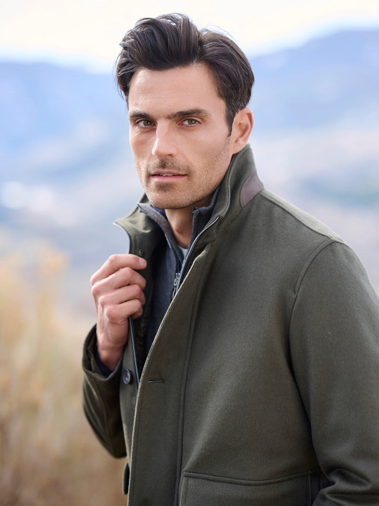The James Bomber Jacket by Herno blends modern edge with classic Italian design. Crafted from luxuriously soft cashmere with a brushed finish, it features a structured stand collar trimmed in Alcantara, flap hand pockets, and a concealed two-way zip for a clean, tailored look. Sharp yet versatile, this refined layer moves seamlessly from city to mountain.