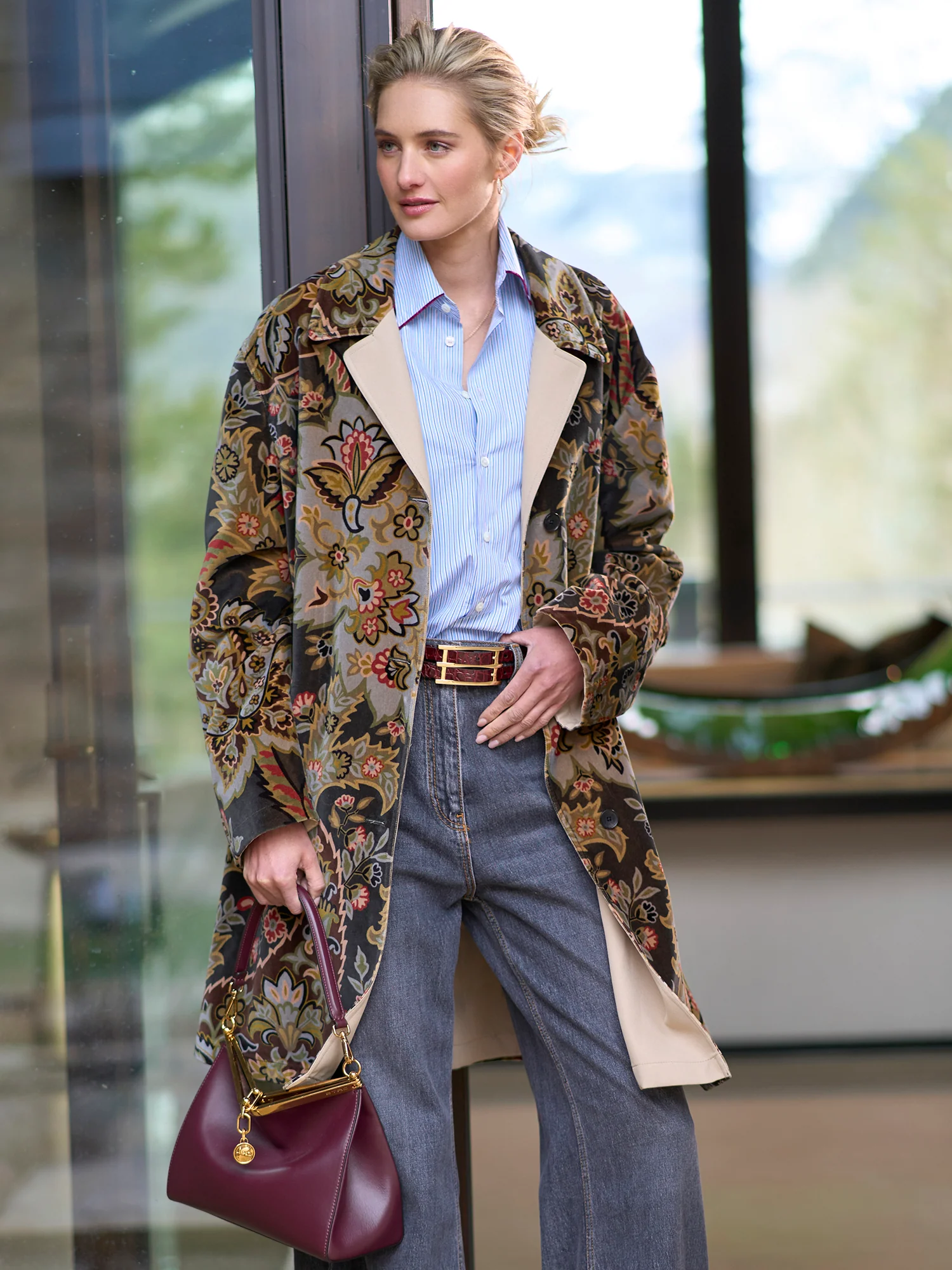Explore the gorgeous colors and textures of the Kora Velvet Paisley Coat, designed by Etro and expertly made in Italy. Kora is made from cotton velvet, perfectly light for fall layering, with a single-breasted closure and cozy hand pockets.