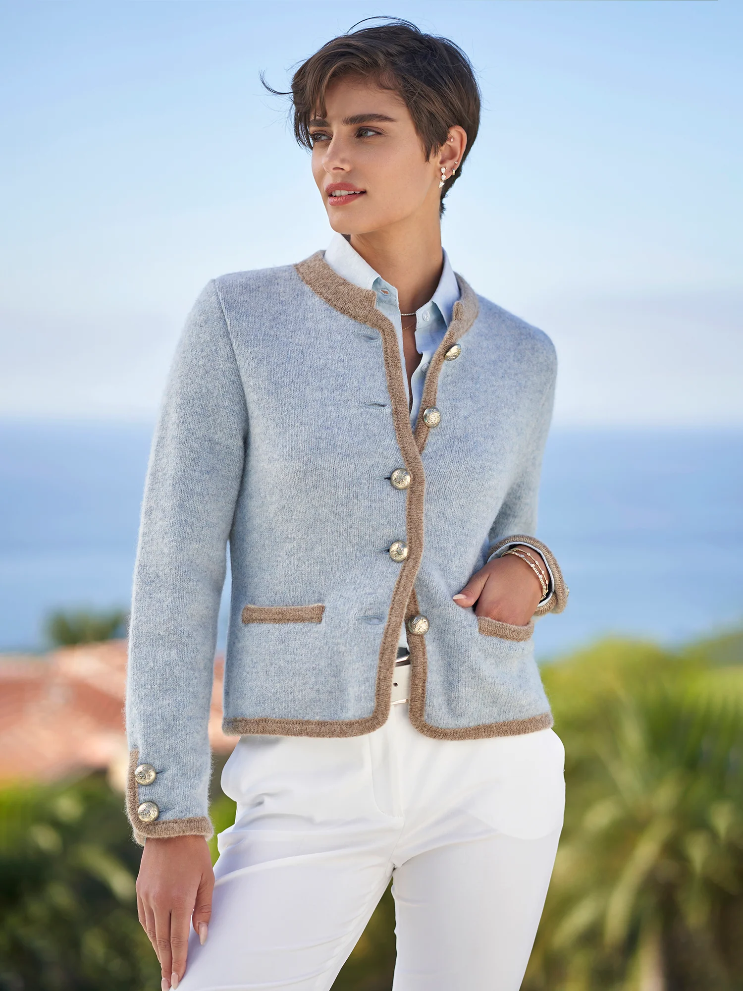 Made in Austria from fine Shetland wool, the Marni Soft Wool Cardigan is a sumptuous layering piece. With contrasting trim, decorative buttons with a lion design, and front slit pockets, this relaxed fit cardigan is sure to look as good as it feels.