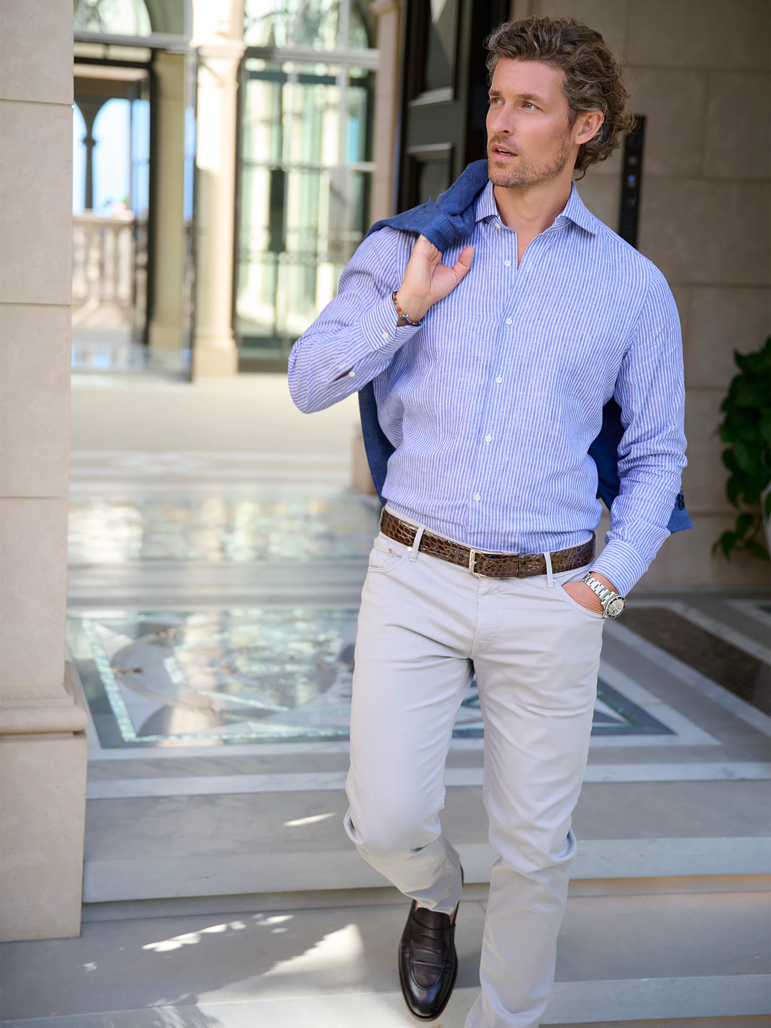 The Ravello Cotton Stretch Jean offers a slim fit for a tailored, contemporary look. Made in Italy, this jean features classic five-pocket construction and a soft cotton-stretch blend for comfort and flexibility. Ravello pairs effortlessly with both casual and polished styles.