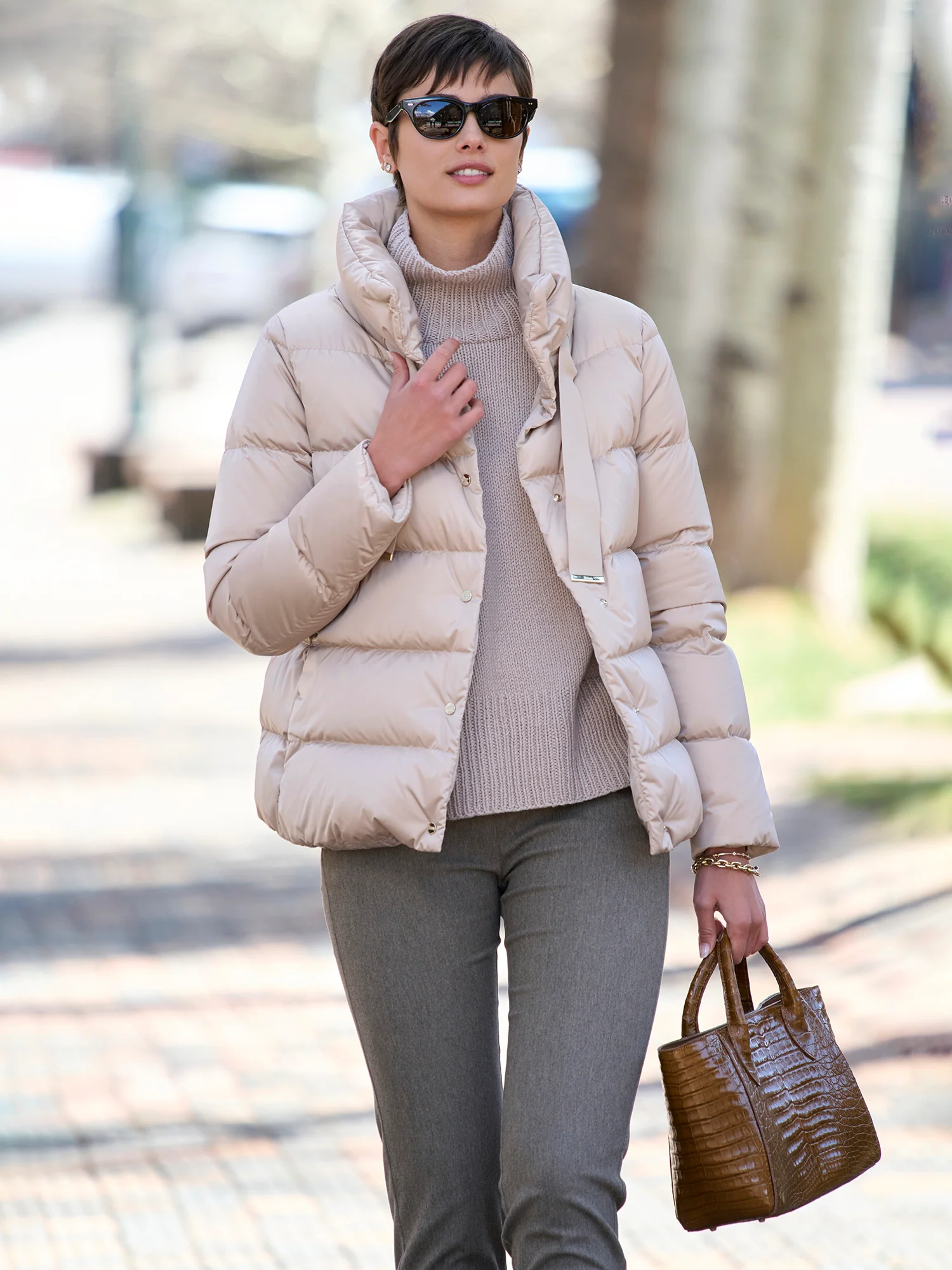Designed by Herno, the Thea Tec Satin Bomber Jacket is fashioned from tec satin with down insulation for style and comfort. A stand collar, two-way zip closure and welt pockets provide practicality while ribbon drawstrings add a charming touch.
